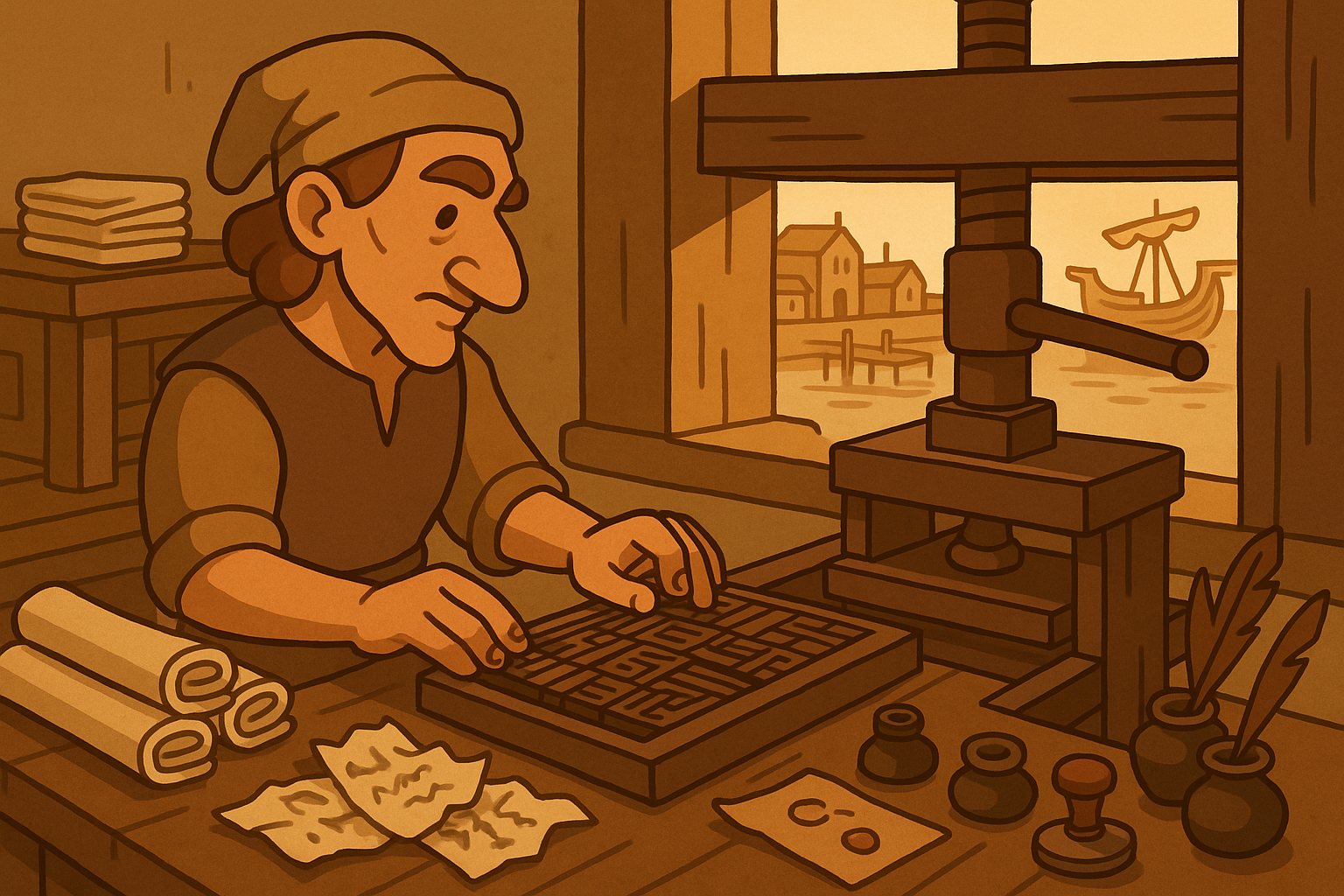 I added a new template category called devlog_cover. The style rules are different from game assets. Landscape format, editorial feel, warm and inviting, connected to the game world but not a screenshot. The key constraint: no modern devices. If the post is about coding on a phone, the cover shows a medieval scribe dictating to a raven at a portable desk outside a tavern. The metaphors keep everything in the Inselnova visual world.
