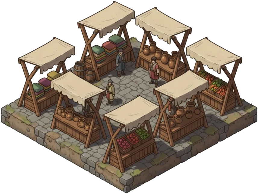Roaming merchants come and go on their own schedule. The stalls may carry resource bundles, military units, food provisions, or coin purses — but selection is never guaranteed. If nothing suits the moment, return later. New merchants arrive frequently, and busier worlds attract a wider variety of stock.